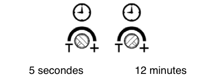 Ajustement du temps : La temporisation sert à définir le temps que le module va rester en détection de mouvement (T = 5 secondes et + = 12 minutes)
