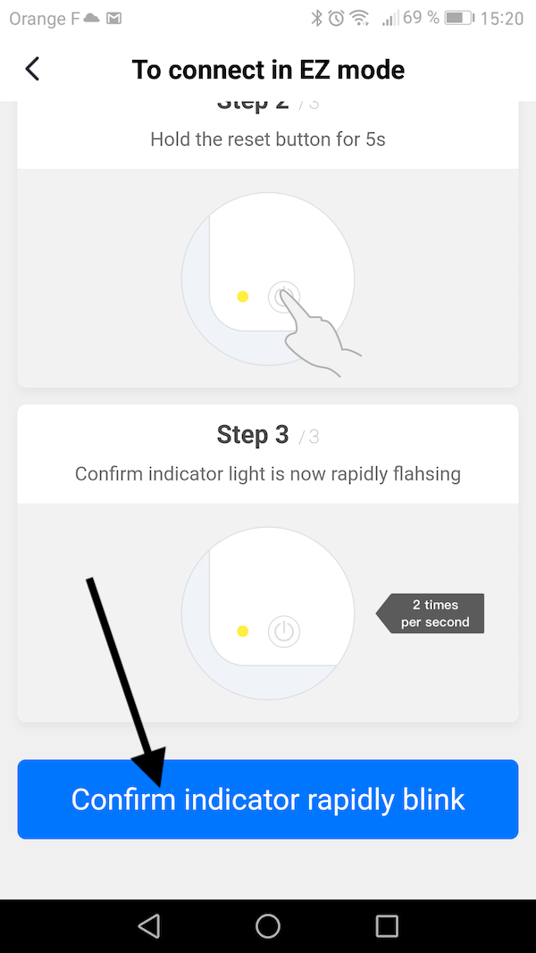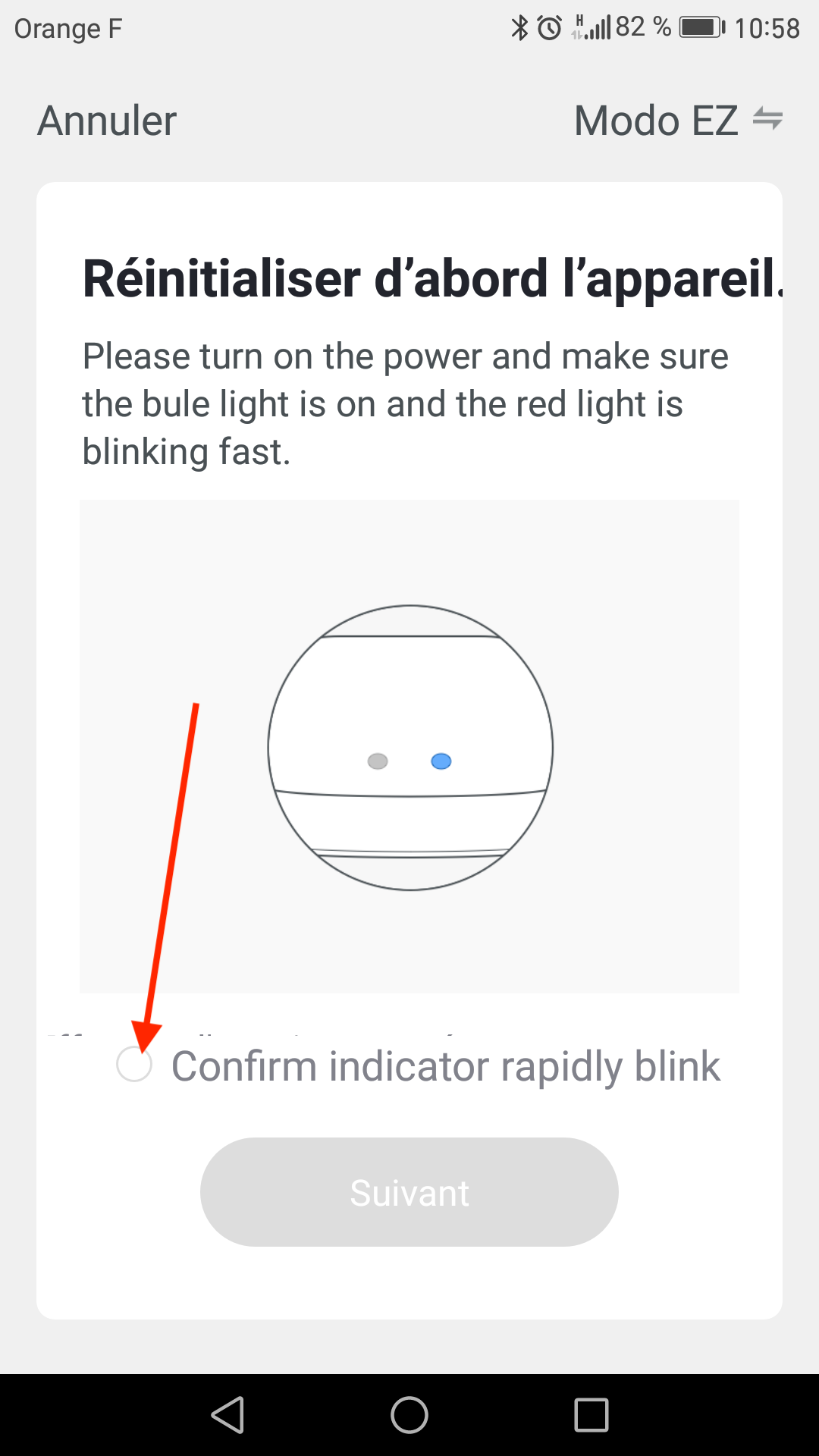 • Cliquez pour valider "confirm indication rapidly blink" puis "suivant".