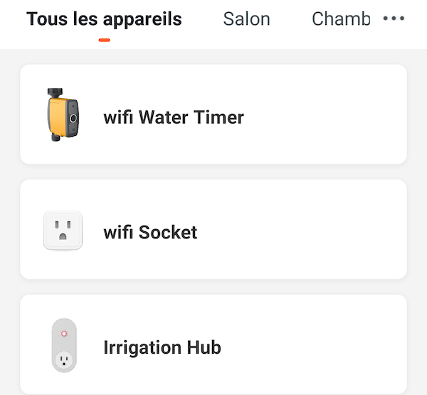 Il s'agit de l'électrovanne ("wifi Water Timer") et de la prise comprise dans la passerelle ("wifi Socket")