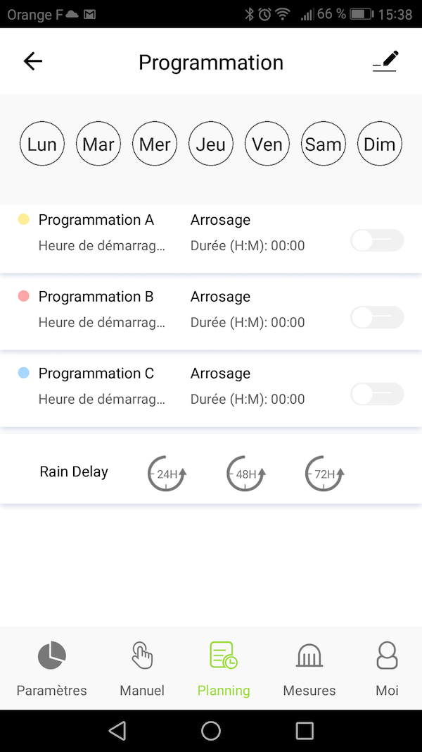 • L'arrosage peut être décalée de 24h, 48h ou 72h à la demande