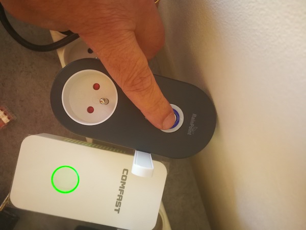 • Appuyer plus de 5 secondes sur le bouton de la passerelle pour qu'il clignote rapidement (il faut peut être s'y reprendre à plusieurs fois).