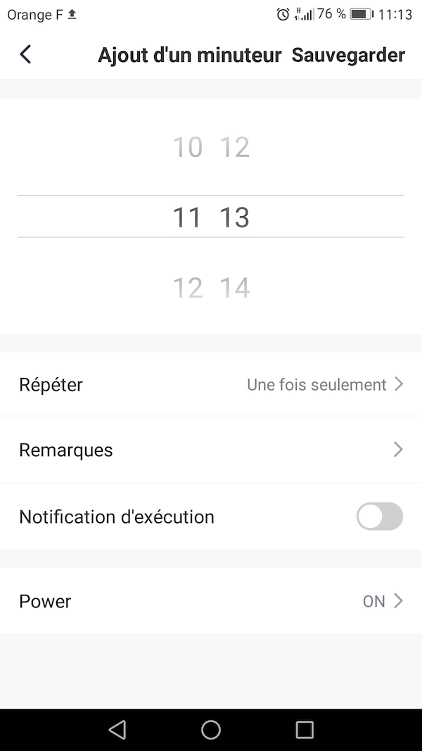 • Vous pouvez aussi, en cliquant sur Timer, ajouter des programmations de mise sous tension de la prise.