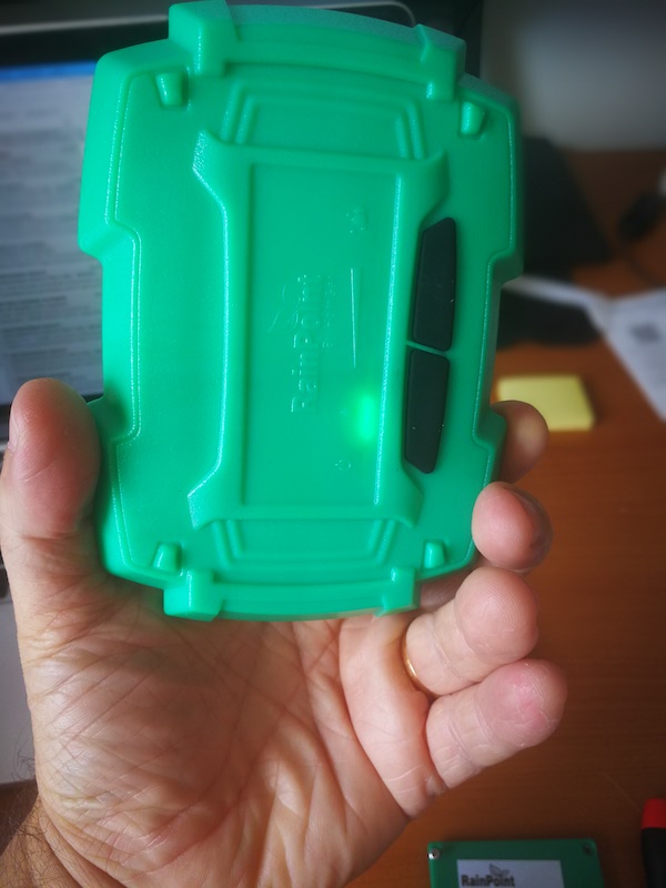 Les deux boutons noirs doivent être maintenus appuyé au moins 5 secondes pour réveiller la sonde de sol. |