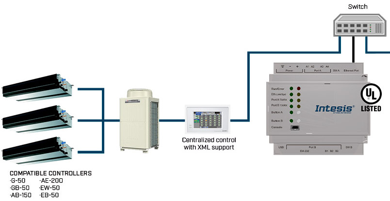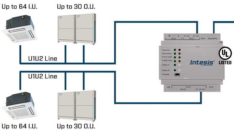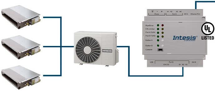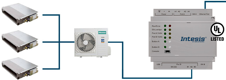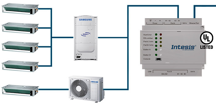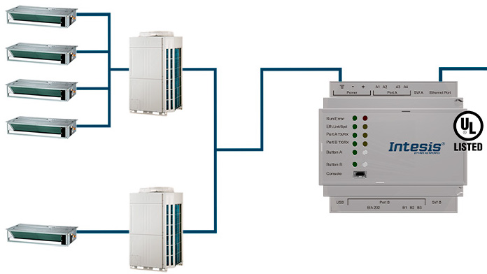 Initialement peu évident à domotiser car non standardisé, il existe maintenant des passerelles Bus↔WiFi/Ethernet proposées par la société espagnole HMS Intesis et permettant de connecter les plus grandes marques de climatiseurs à la eedomus+, à Jeedom, au Fibaro Home Center (HC3 et HC3L), Home Assistant ou Domoticz.